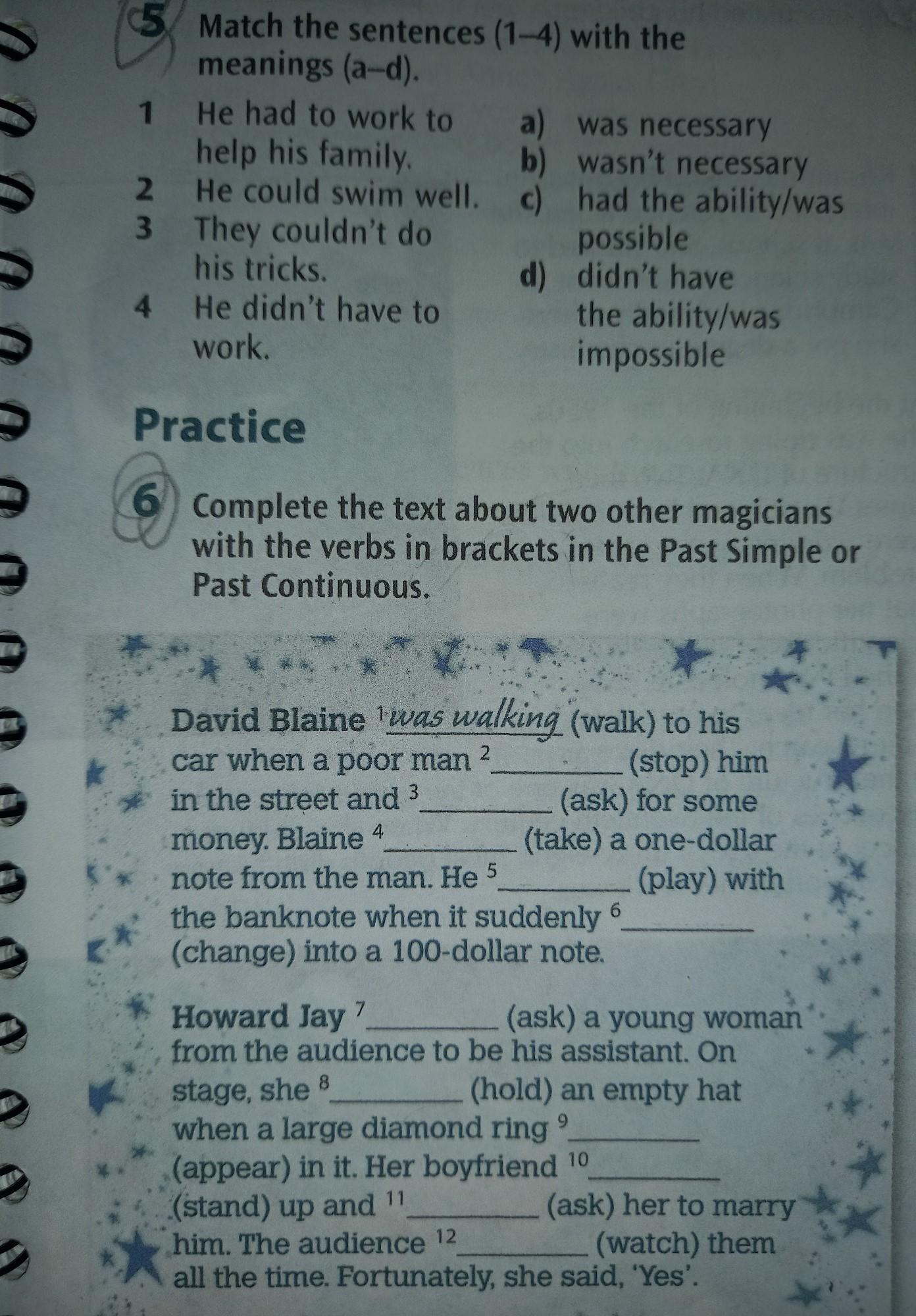 Ответ:To his car when a poor man stopped him im the street and asked for some money. Blaine toor a one-dollar note from the man. He was playing with the bancknote when it suddtnly changed into a 100-dollar nort.