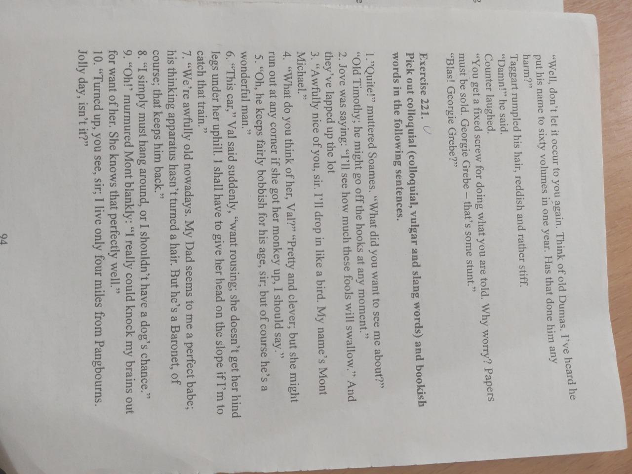 Нужно выполнить 221 упражнение по Лексикологии тут выписать разговорные,вульгарные и книжные слова в следующих предложениях помогите пожалуйста и заранее спасибо: