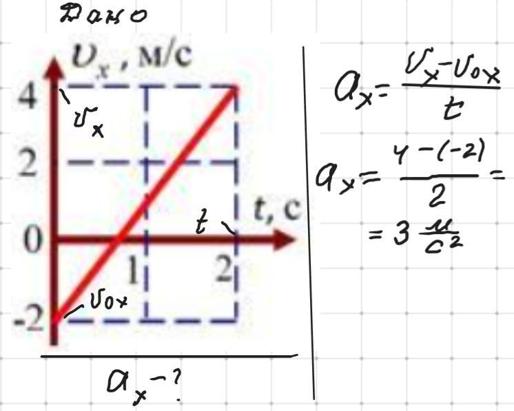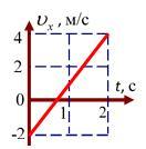На рисунку показано графік залежності проекції на вісь х швидкості тіла від часу.