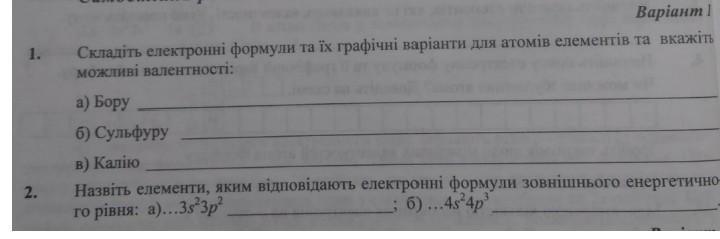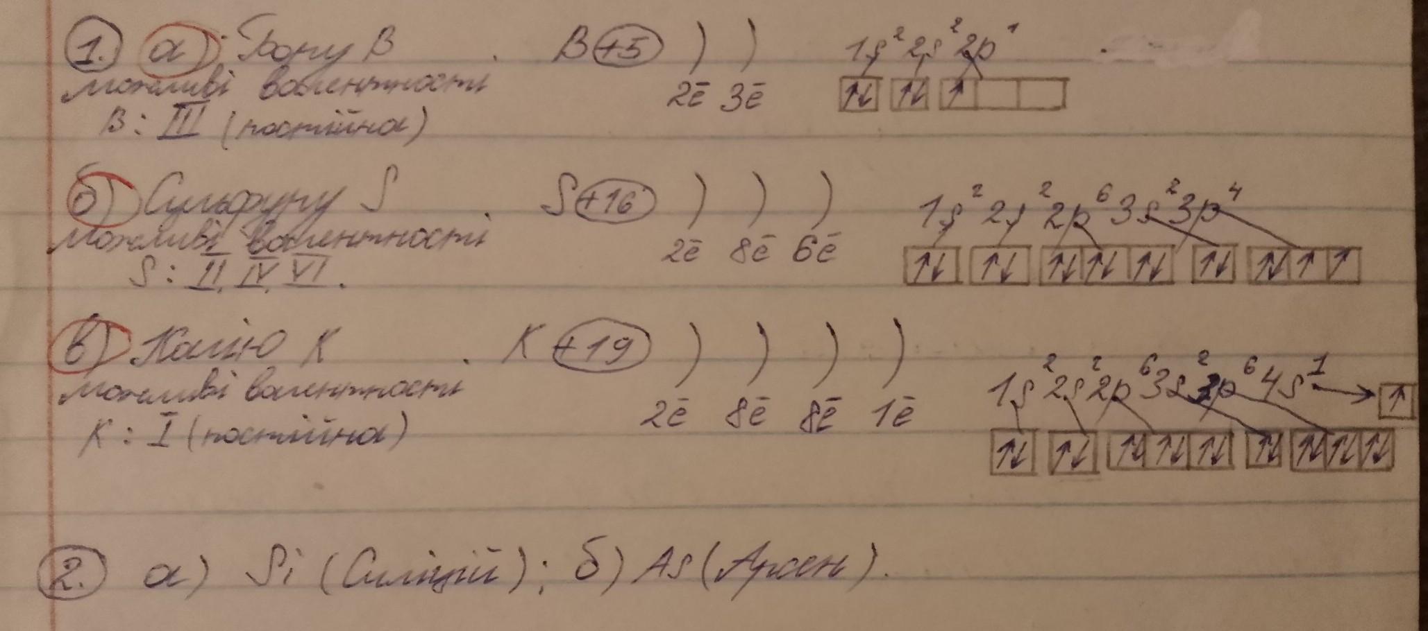 1. Складіть електронні формули та їх графічні варіанти елементів та вкажіть можливi валентності: