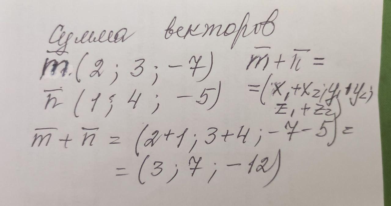 m+n=(2;3;-7)+(1;4;-5)=(3;7;-12)