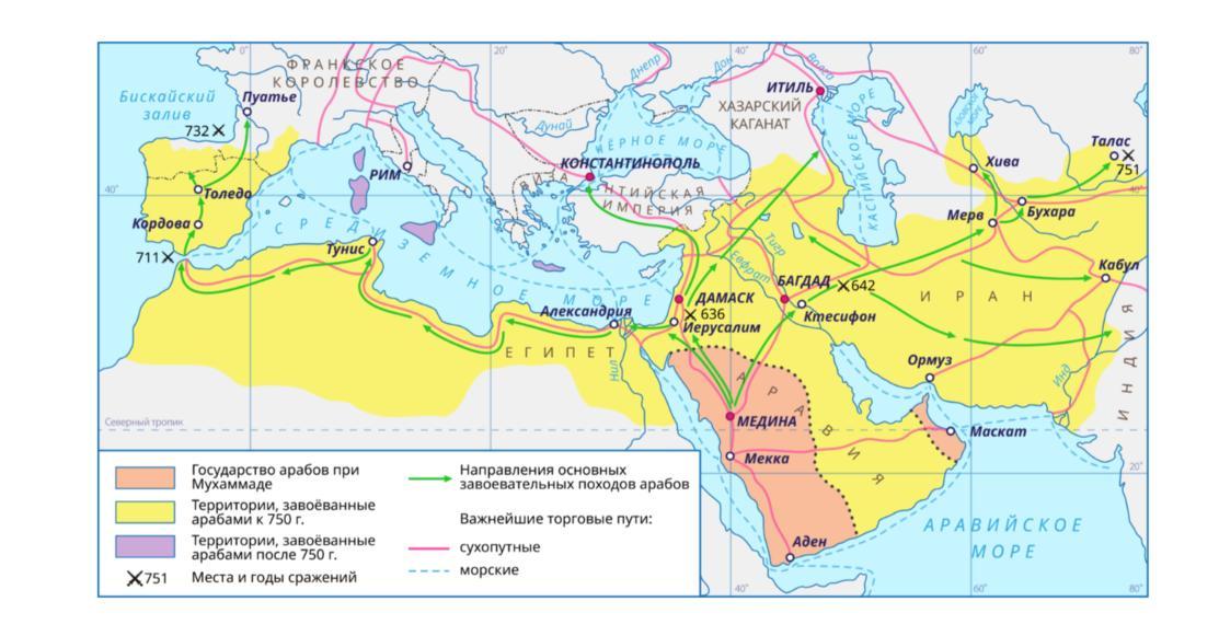1. Покажите на карте территории, завоеванные Арабским халифатом.