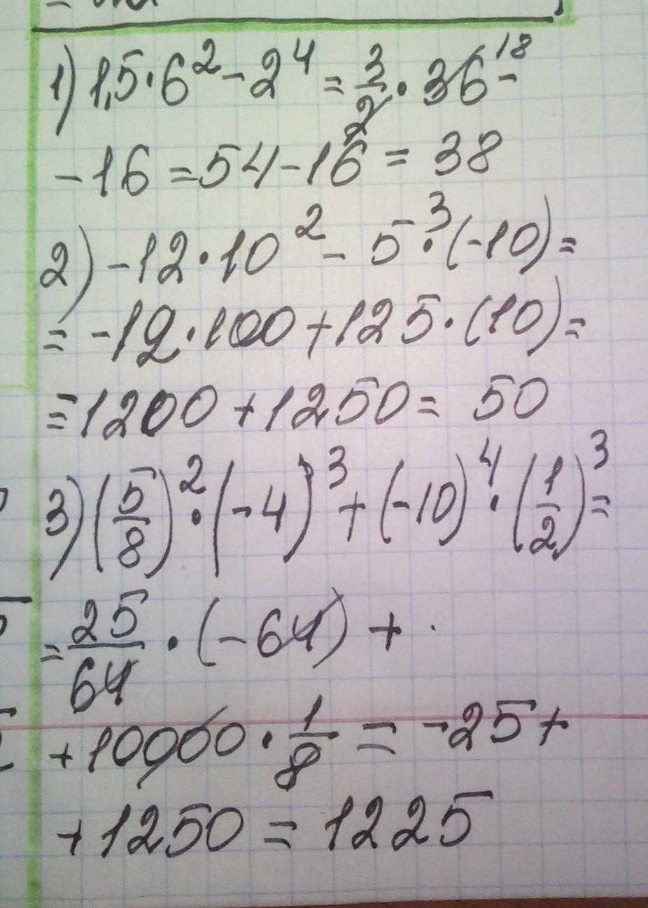1,5 * 6² - 2⁴ = 1,5 * 36 - 16 = 54 - 16 = 38
