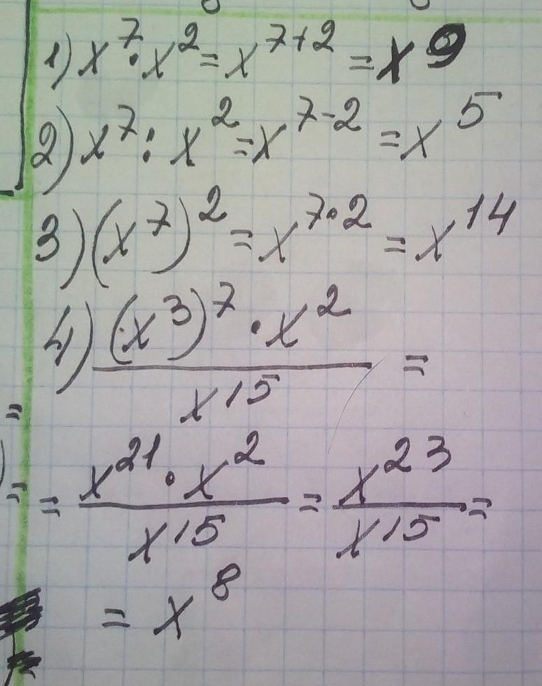 1) х⁹. 2) х⁵. 3)х¹⁴. 4) х²³/х¹⁵