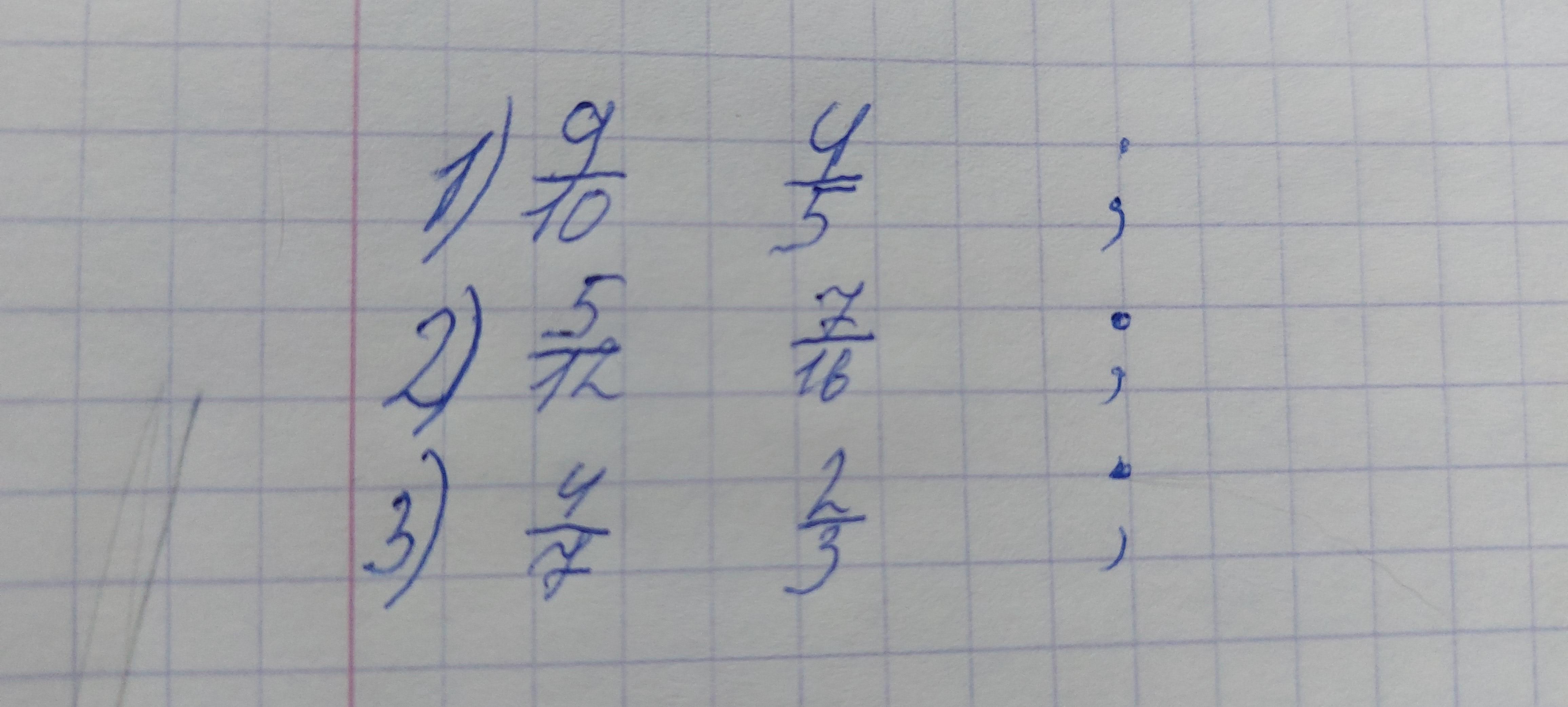 3) так же как и во 2, мы нашли НОК 7 и 3 (21) и сравнили дроби