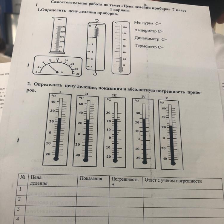 2. Определить цену деления, показания и абсолютную погрешность прибо-