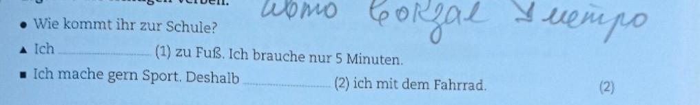 . Wie kommt ihr zur Schule? ▲ Ich . Ich mache gern Sport. Deshalb авто вокзал у метро (1) zu Fuß. Ich brauche nur 5 Minuten. Ergänze die Buchstaben und (2) ich mit dem Fahrrad. (2)