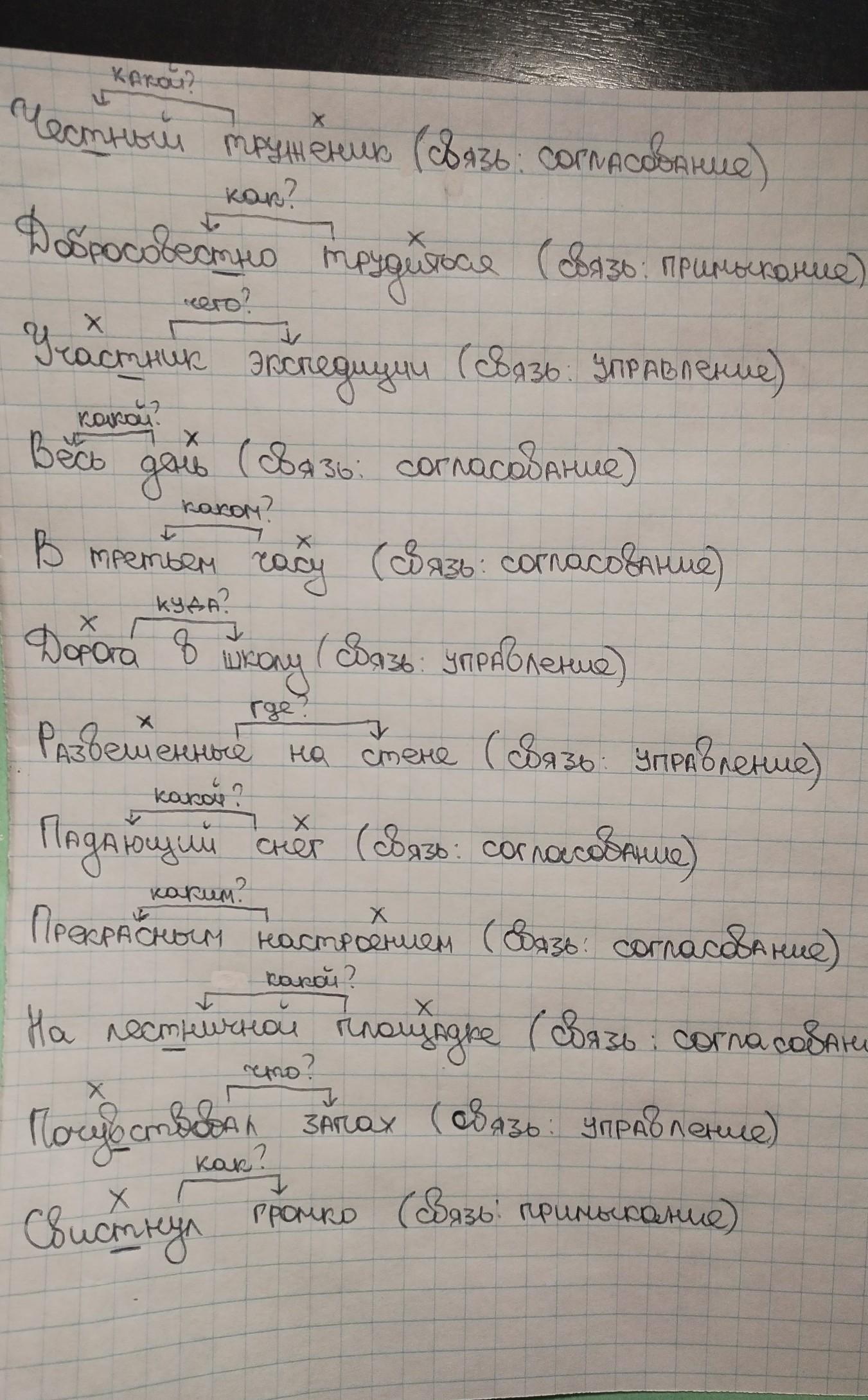 II. Запишите словосочетания, обозначьте графически главное и зависимое слова. Укажите вид связи слов в записанных словосочетаниях.