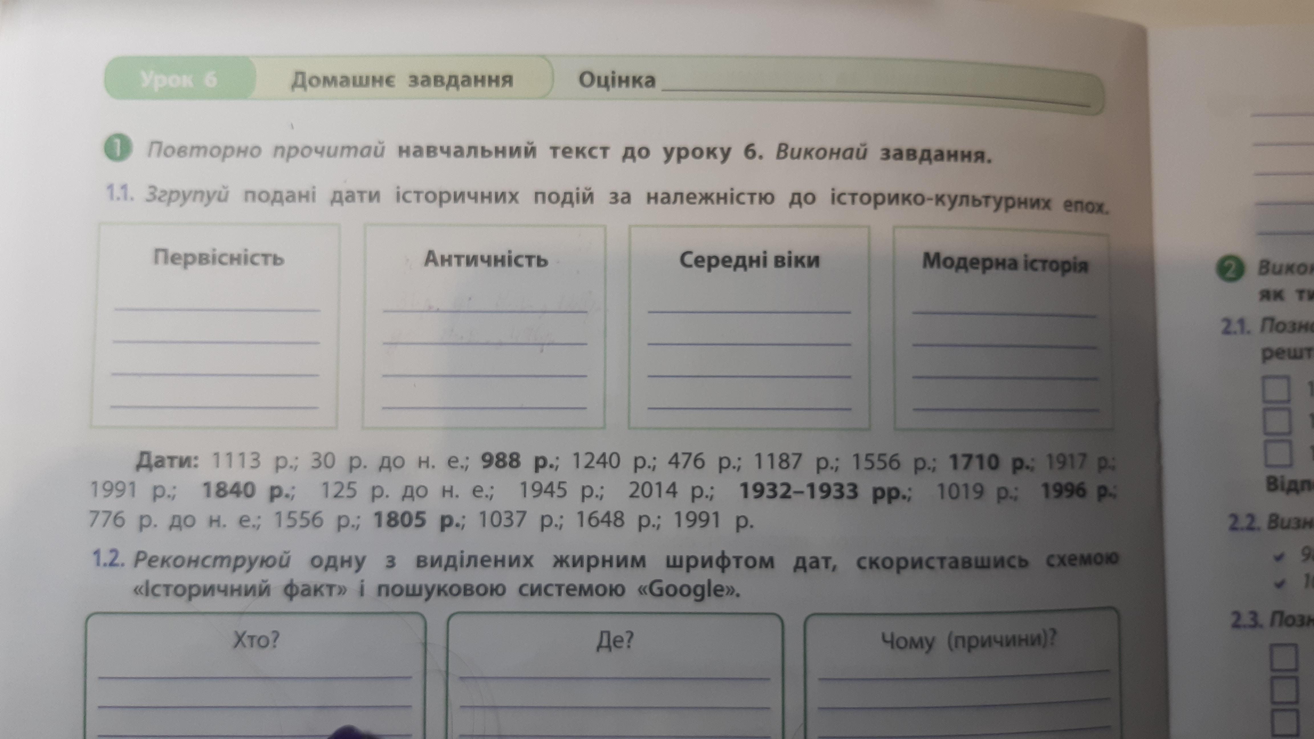 Згрупуй подані дати історичних подій за належністю до історико-культурних епох.