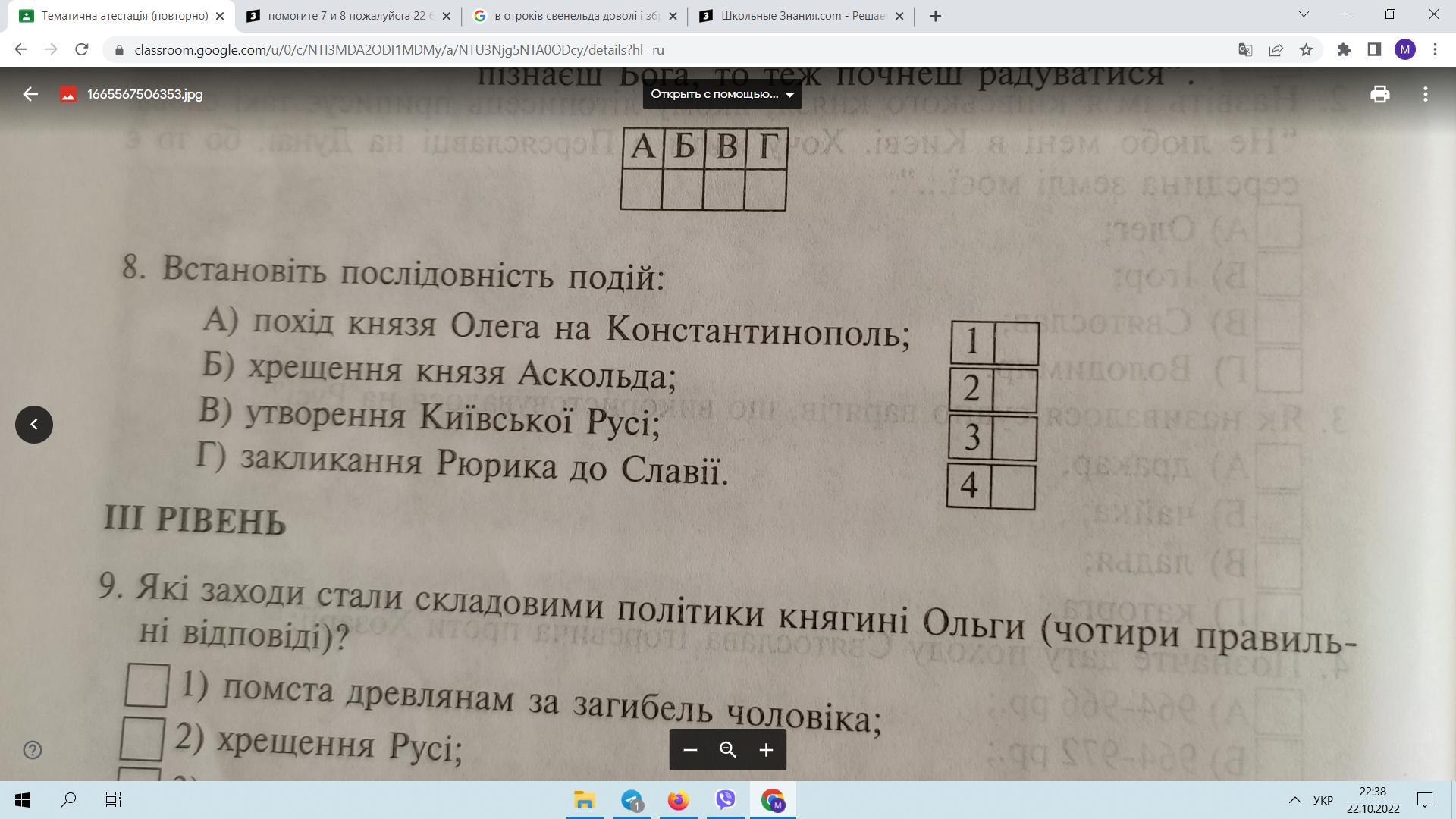 1 – В ; 2 – Б ; 3 – Г ; 4 – А. (це в порядку зростання. від 852 до 907.)