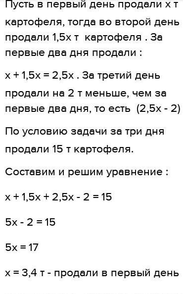 Пусть в первый день продали x т картофеля, тогда во второй день продали 2,5x т картофеля . За первые два дня продали :