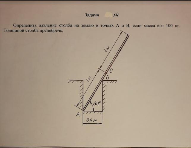 Определить давление столба на землю в точках А и Б если его масса 100 кг Толщиной столба пренебречь
