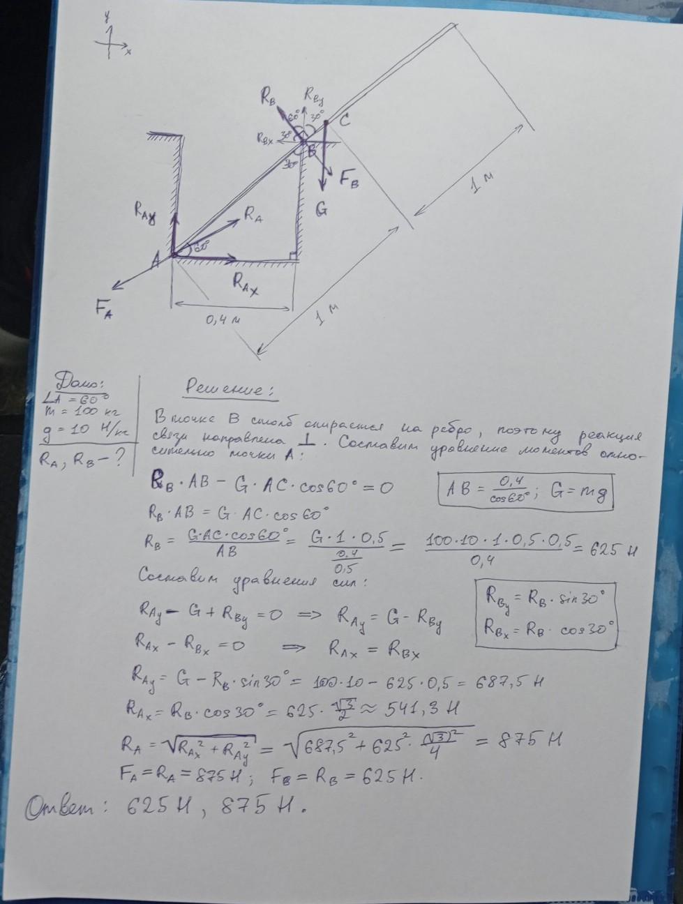 Так как силы в этих точках равны по модулю реакциям связей, то ищем реакции Ra и Rb.