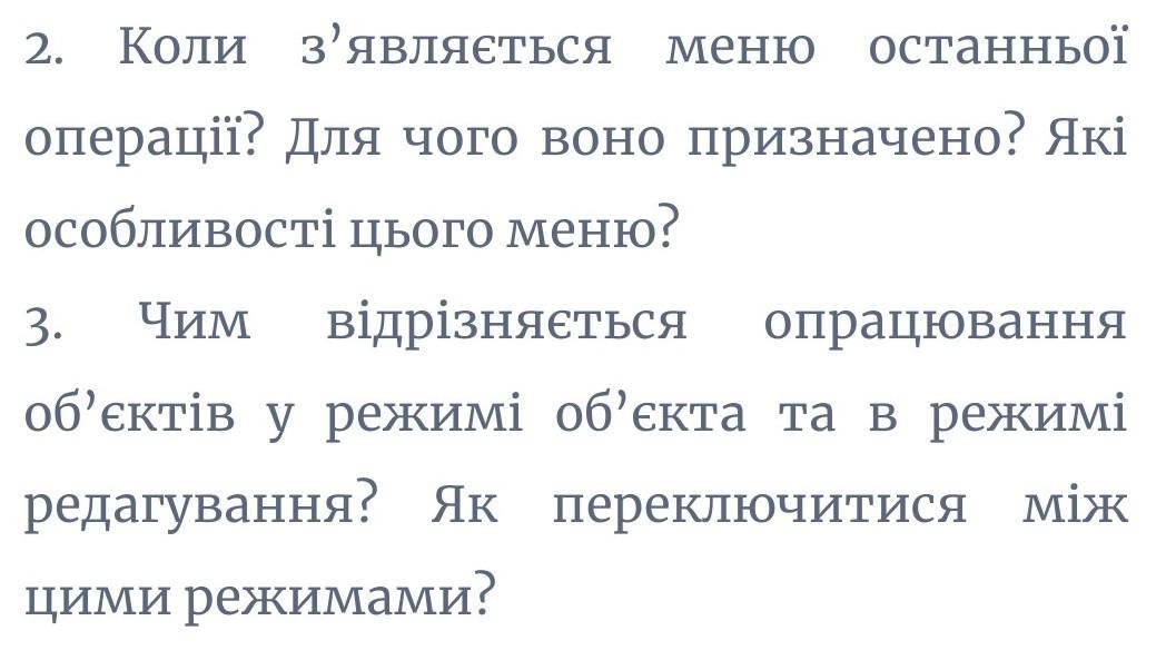 2. Відрізняється тим що в режимі редагування можна редагувати полігони і тд, а у режимі обьекта, ні.