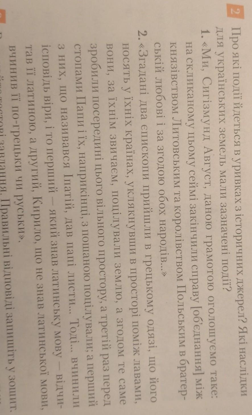 Про які події йдеться в уривках з історичних джерел? Які наслідки для українських земель мали зазначені події?
