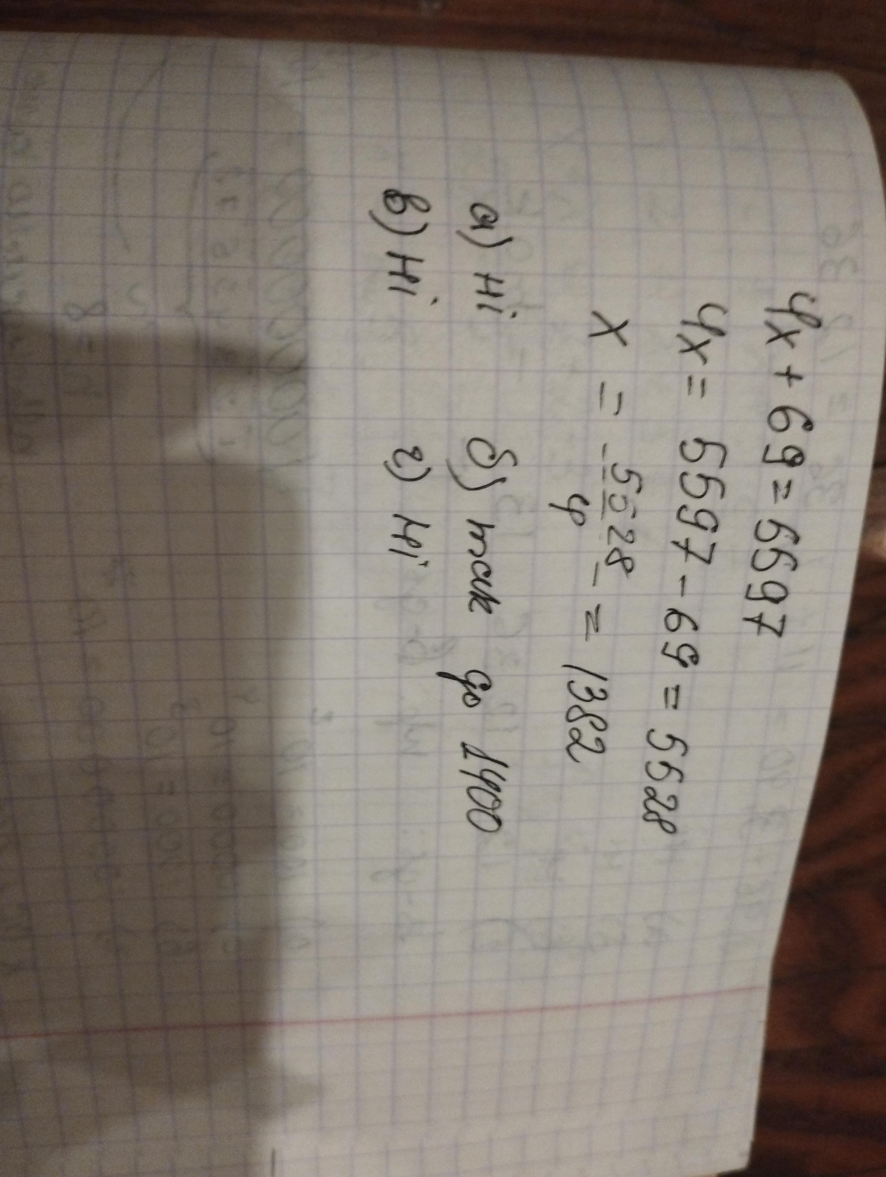К какому круглому числу наиболее близок корень уравнения 4×X+69=5597