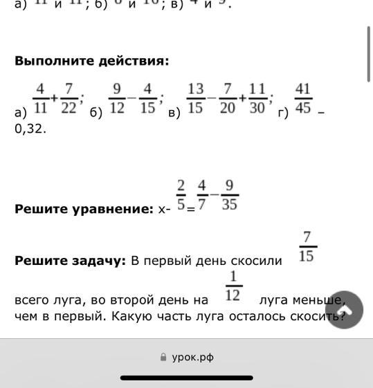 1) 7/15 - 1/12 = 28/60 - 5/60 = 23/60 => 2-ой день