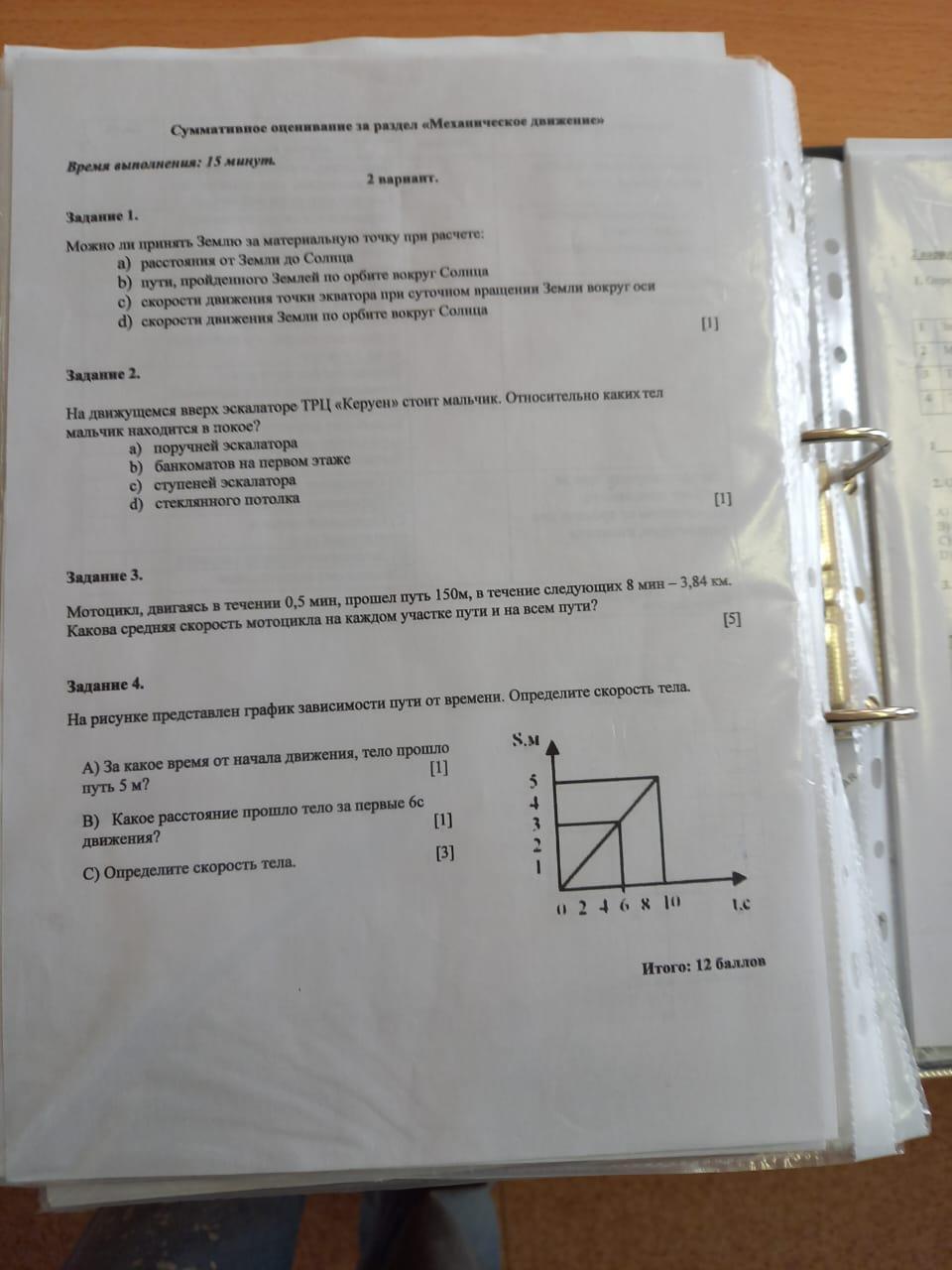 с.) Берем любое время на графике, например 6. Видим по графику, что за 6 с тело прошло 3м. V = S/t = 3/6=0.5 м/сек