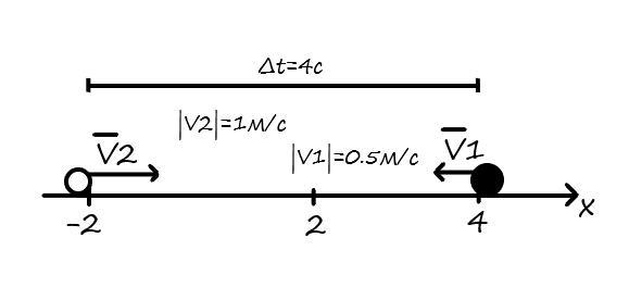 Постройте график прямолинейного движения двух тел вдоль оси Ox.