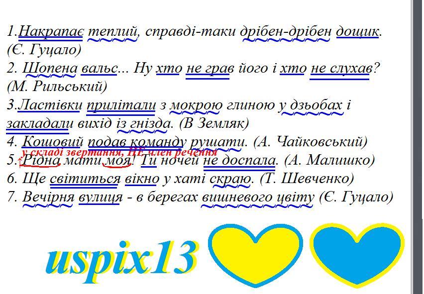 дрiбен-дрiбен дощик. (Є. Гуцало) 2. Шопена вальс... Ну хто не грав його і хто не слухав? (М. Рильський)