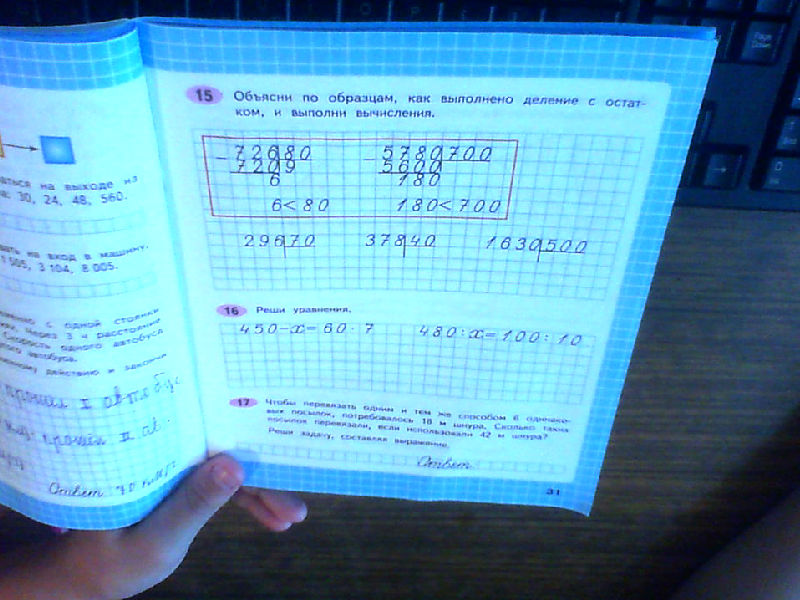 Объясни по образцам, как выполено деление с остатком, и выполни вычесления. Номер 15 помогите кажется всё очень хорошо видно если нет пишите в коменнтариях