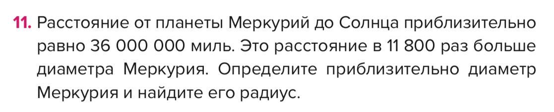 1)36000000/11800= ≈3051(км)-диаметр Меркурия