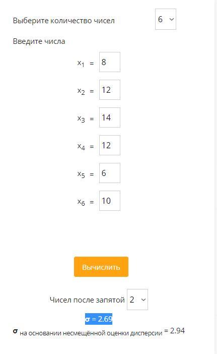 Вычислите среднее квадратное отклонение ряда чисел: 8, 12, 14, 12, 6, 10