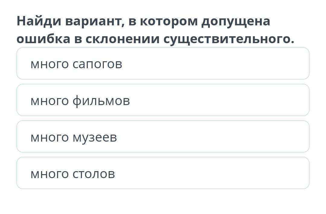 1 много сапогов слово сапогов написано не правельно