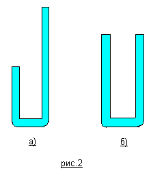 Б, так как по правилу сообщающихся сосудов на рис А максимальный уровень жидкости будет равен левому столбцу, а на рис Б макс уровень воды будет больше ( будет равен высоте столбцов ). Те учитывая правило сообщ сосудов следует принять U-образную форму с равными по высоте трубками