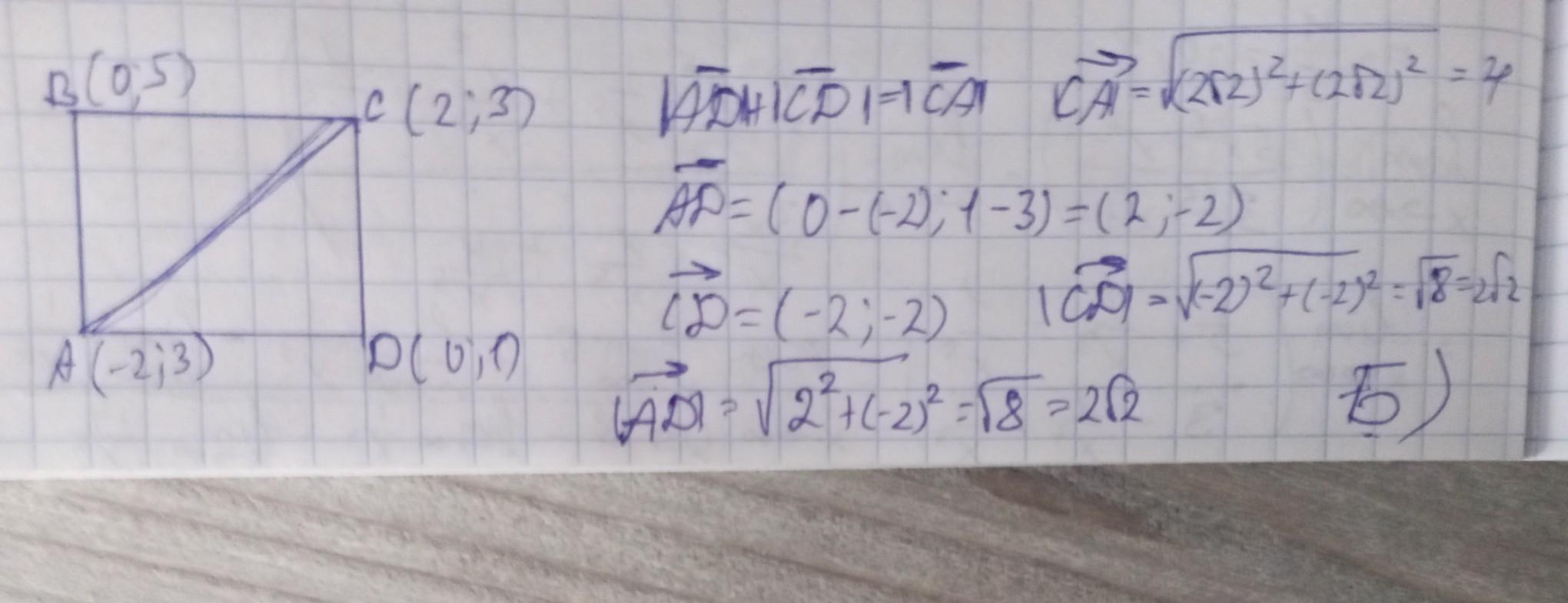 5. Знайдіть діагональ квадрата АВСD, якщо А(-2;3), В(0;5), С(2;3), D(0;1).
