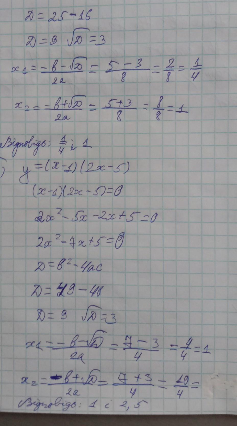 ответы будут, 1/4 и 1, и 1 и 2,5