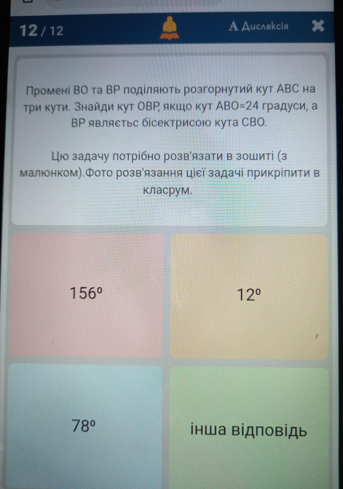 Так как ВР биссектриса угла СВО, то углы ОВР = СВР = 156° : 2 = 78°
