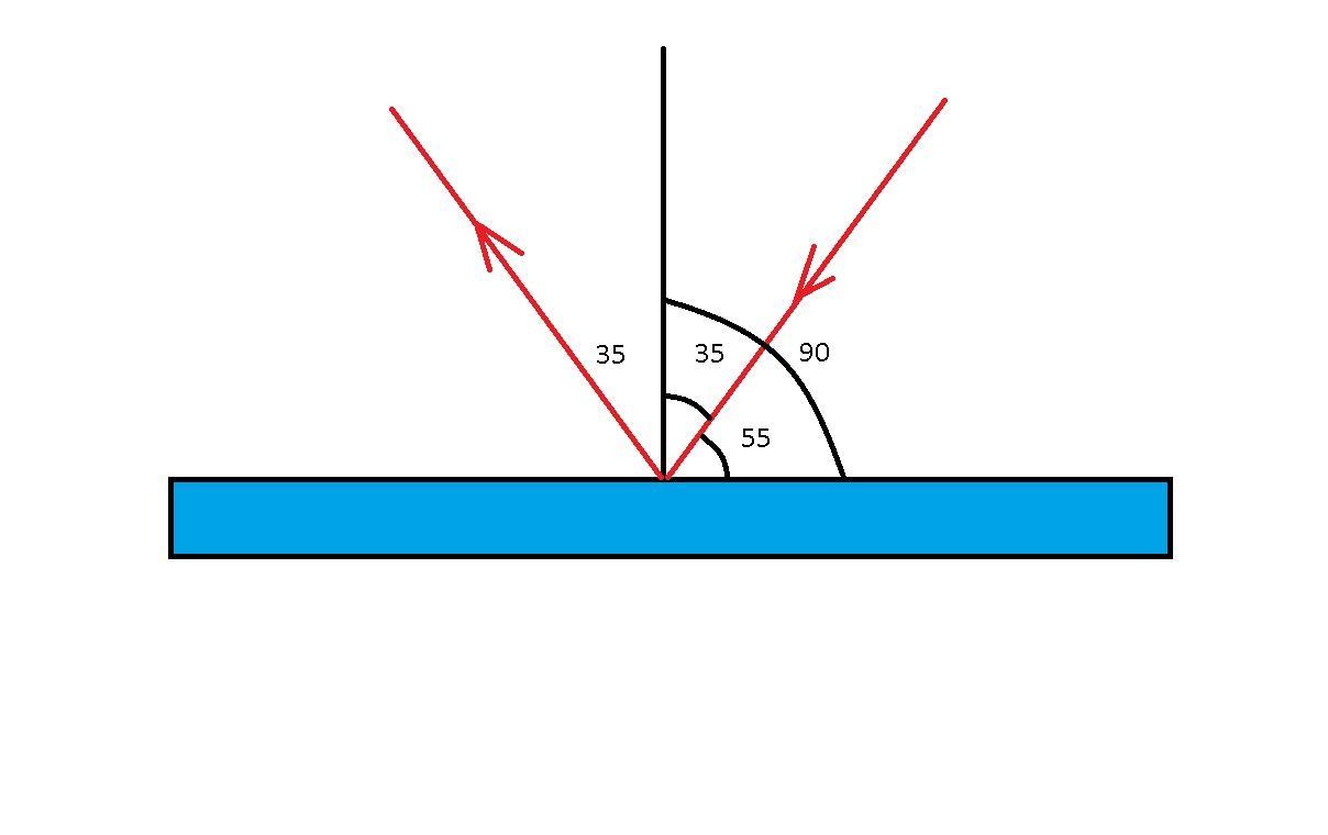 Угол падения 90-55=35°