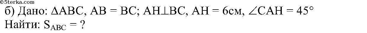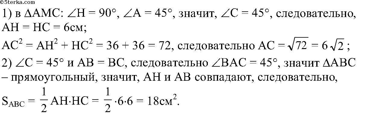 Визначте площу рівнобедреного трикутника, якщо висота, проведена до бічної сторони, дорівнює 6см і утворює з основою кут 45°