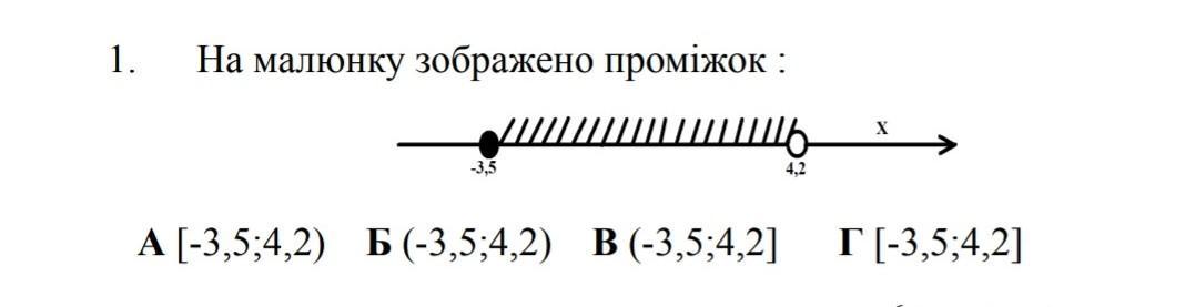 1. На малюнку зображено проміжок : A [-3,5;4,2) B (-3,5;4,2) B (-3,5;4,2] 4,2 X Г[-3,5;4,2]