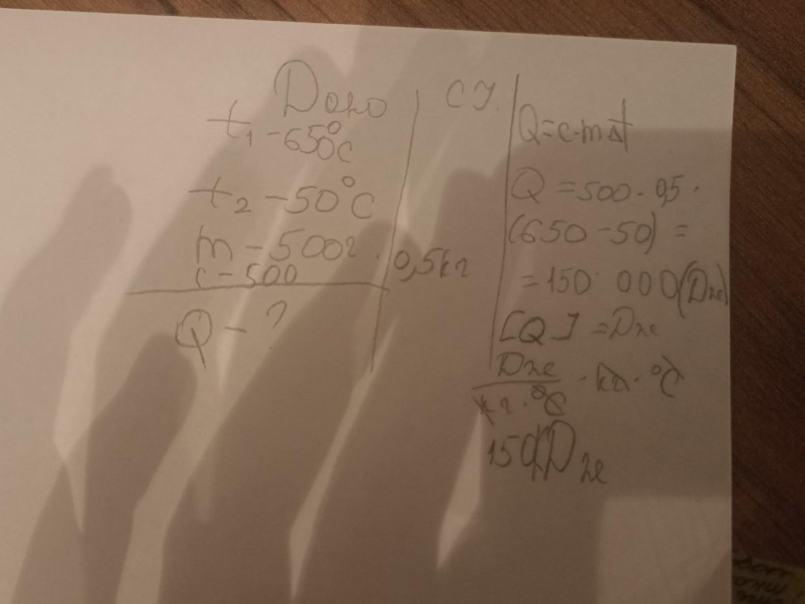 Q = 500*600*0.5 = 300 000*0.5 = 150 000 Дж = 150 кДж
