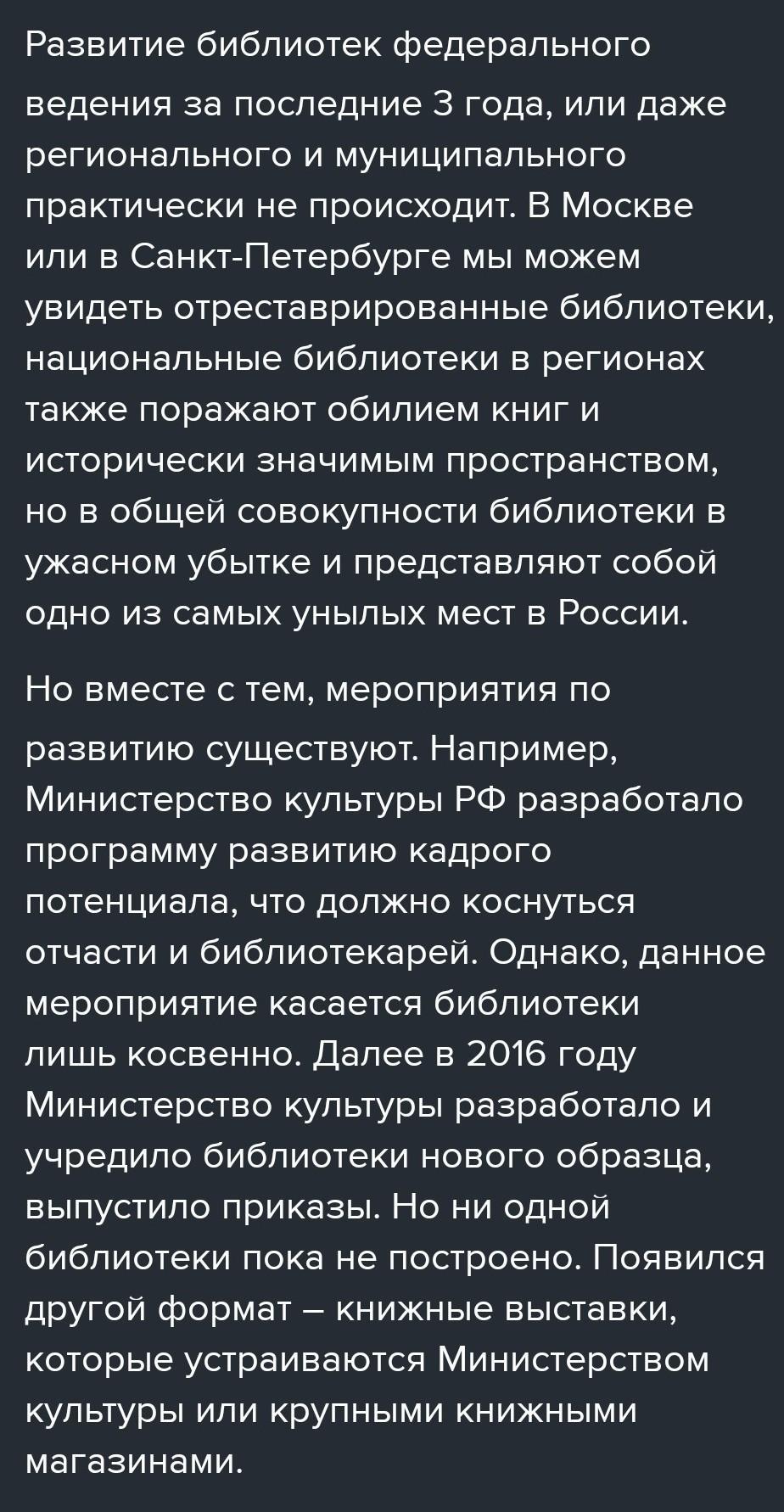 Обратитесь к материалам сайта Министерства культуры РФ (www.mkrf.ru) и на их основе подготовьте сообщение по теме "Развитие библиотек федерального ведения ЗА ПОСЛЕДНИЕ 3 ГОДА(2019-2022)