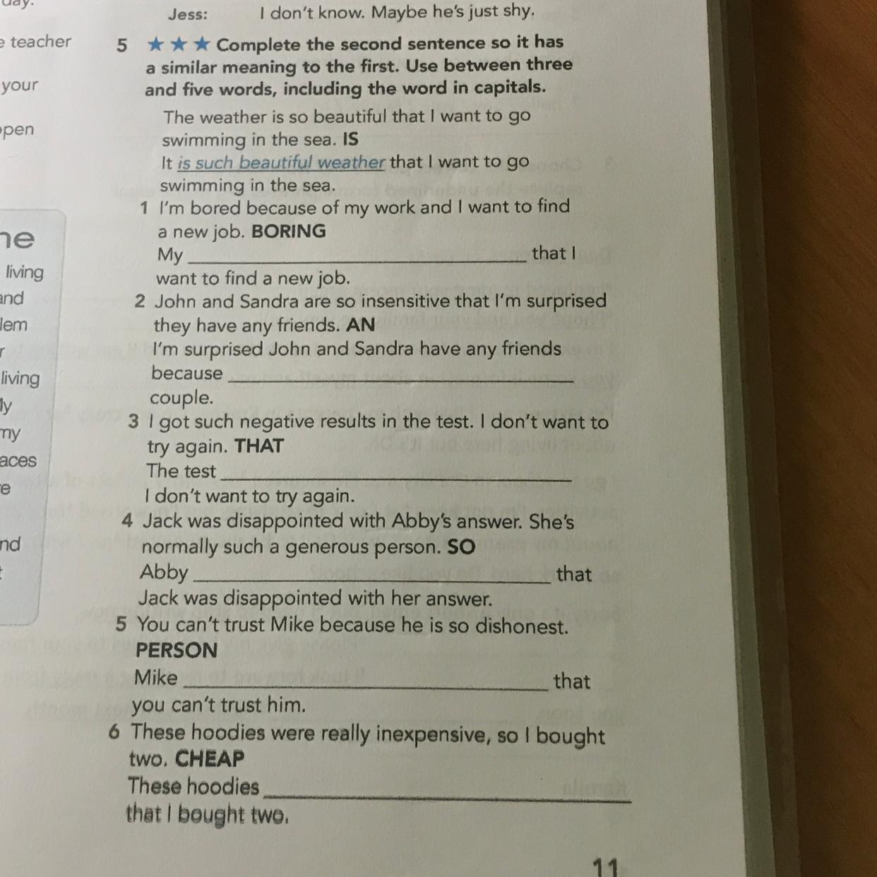 4. Abby normally such a generous person, so that Jack was disappointed with her answer.