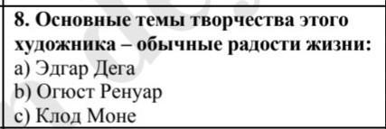 Радости обычной жизни в творчестве привлекали Огюста Ренуара (ответ b)