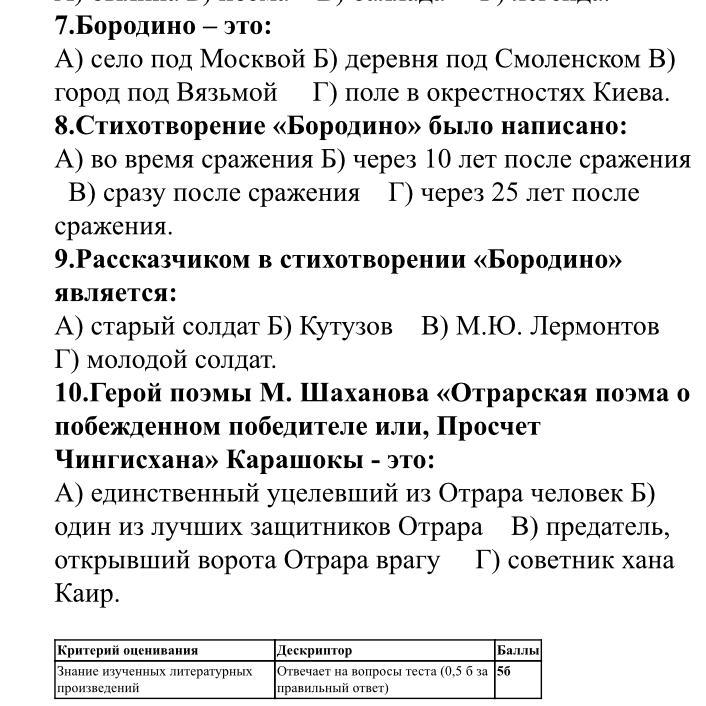 8.Стихотворение «Бородино» было написано: