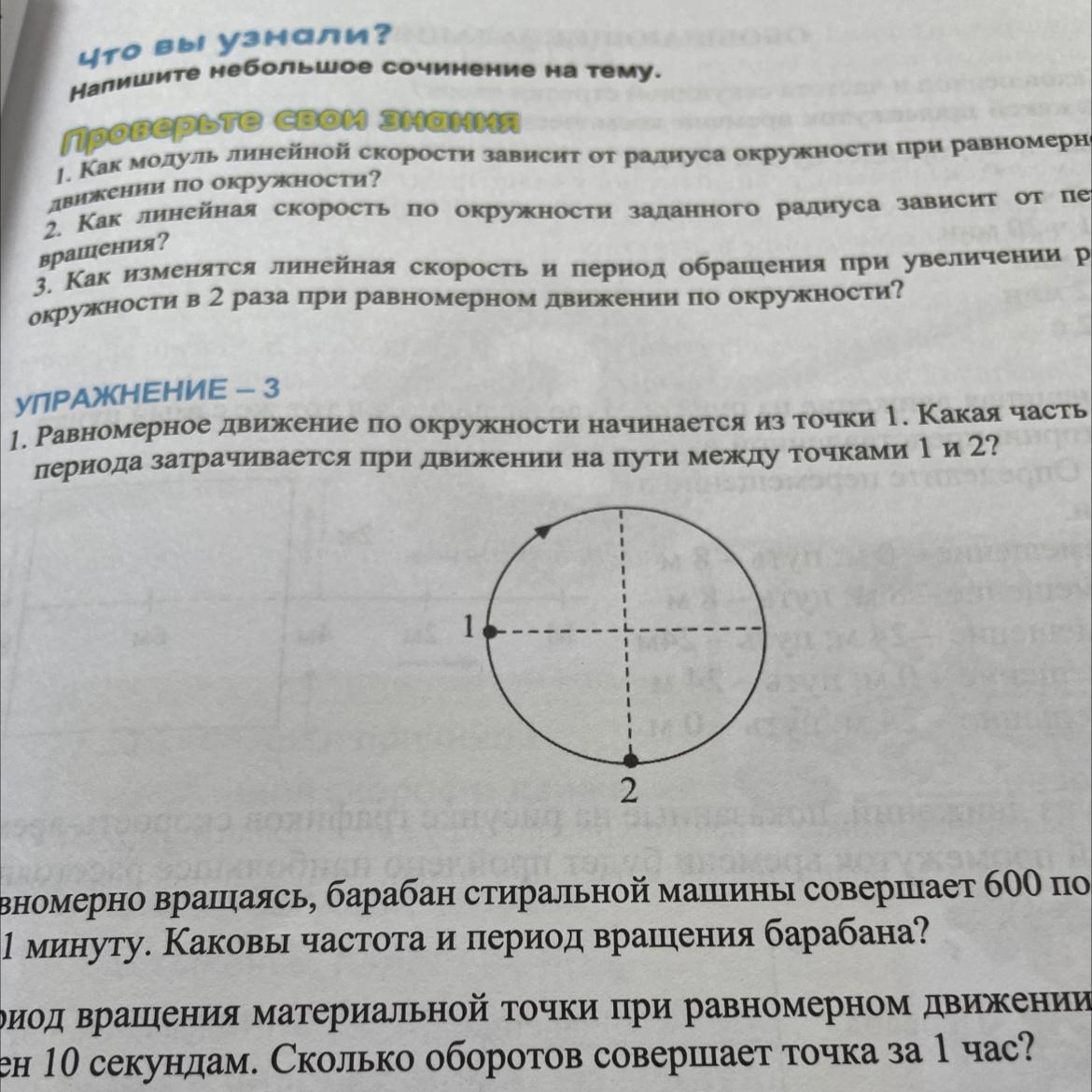 Равномерное движение по окружности начинается из точки 1. Какая часть периода затрачивается при движении на пути между точками 1 и 2?