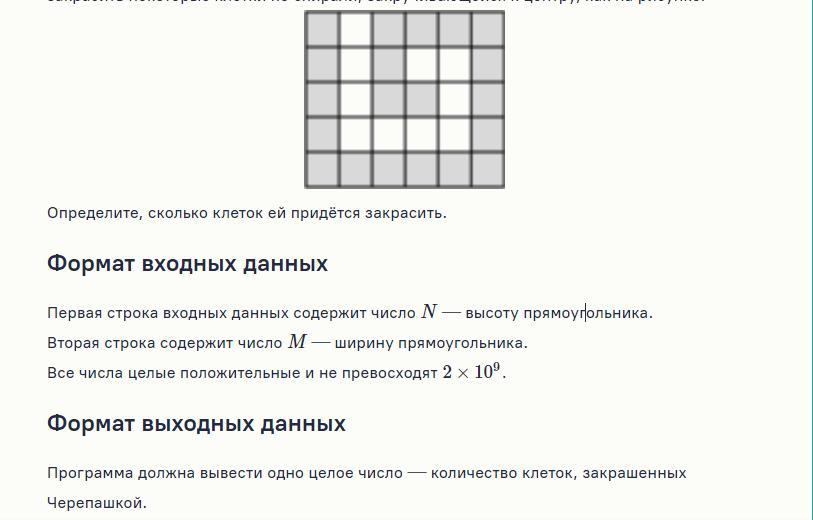 Программа должна вывести одно целое число — количество клеток, закрашенных Черепашкой.
