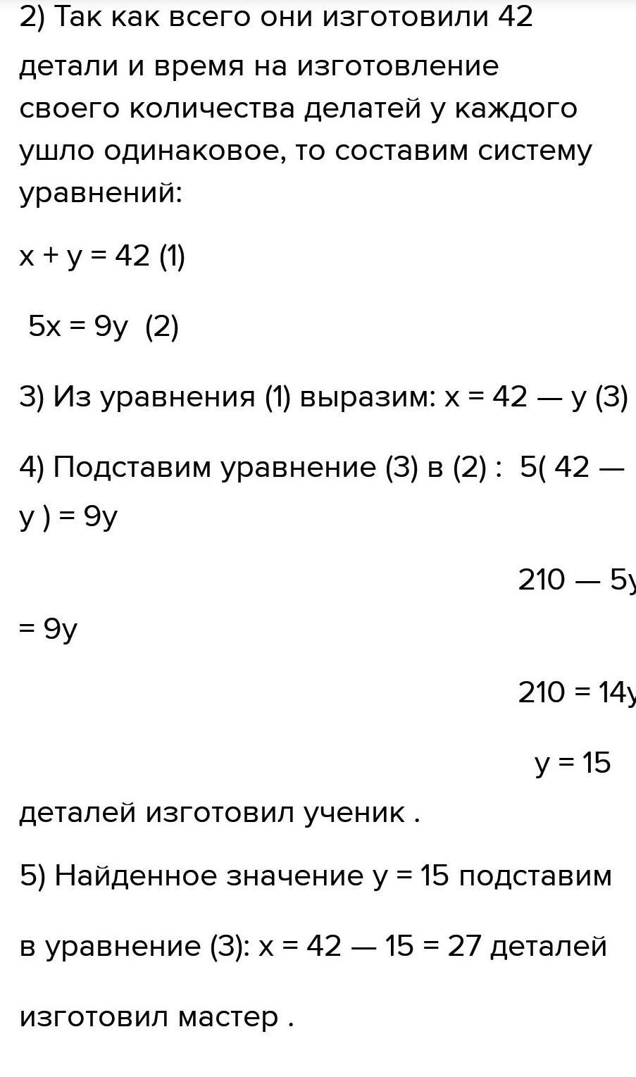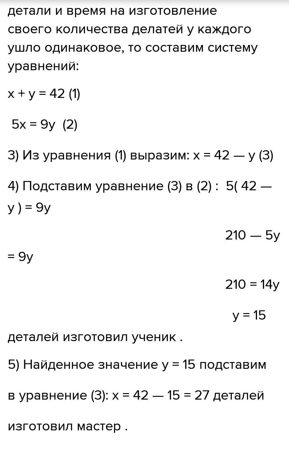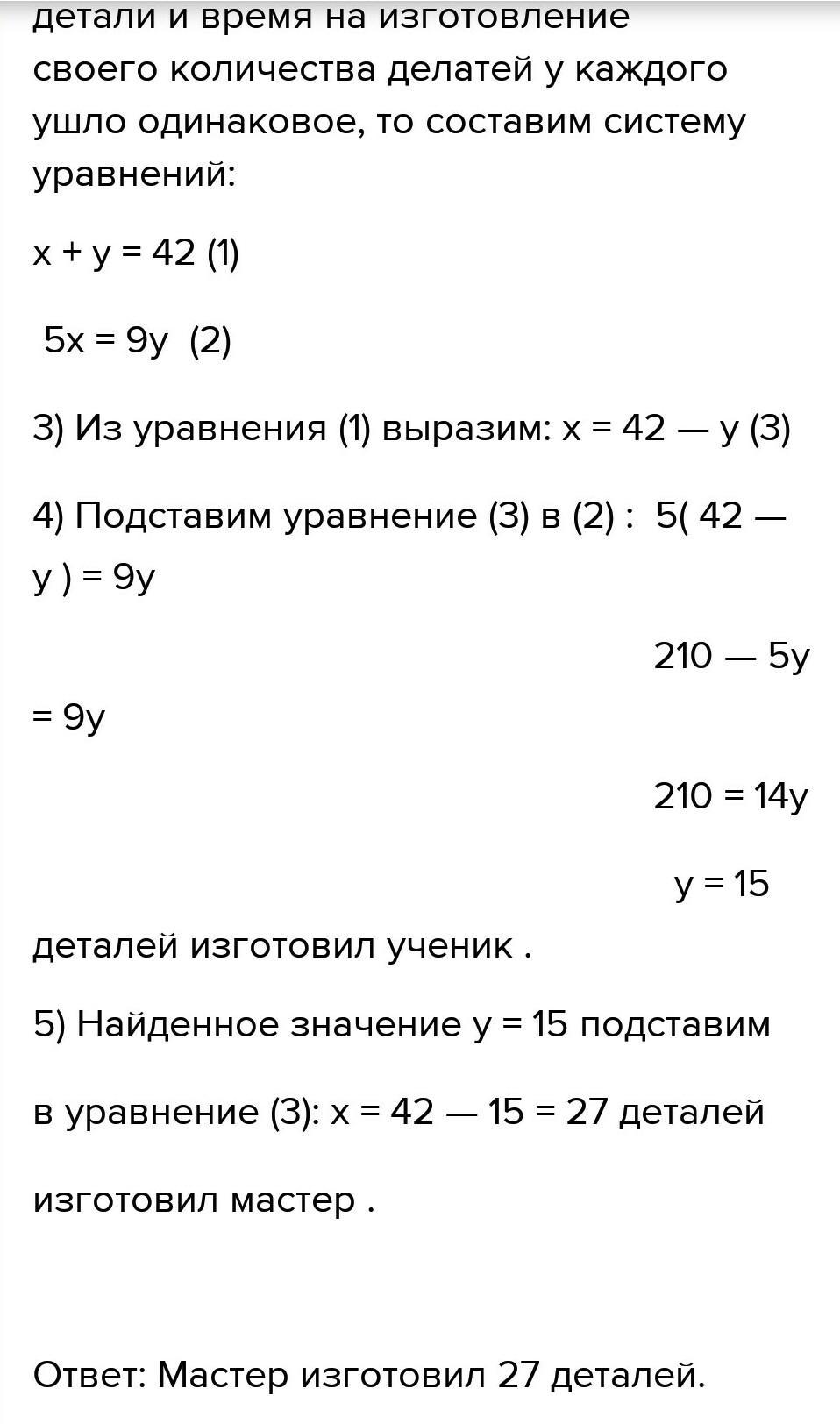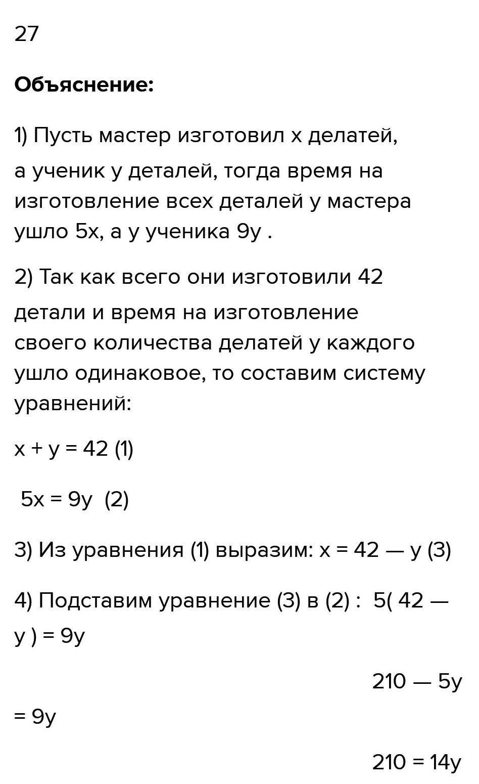 Майстер виготовляє одну деталь за 5 хв, а його учень таку ж деталь – за 9 хв. Працюючи разом вони виготовили 36 деталі. Скільки деталей виготовив майстер?
