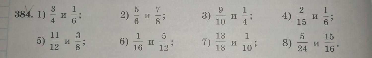 А упражнения Приведите к наименьшему общему знаменателю м дроби (382-385);