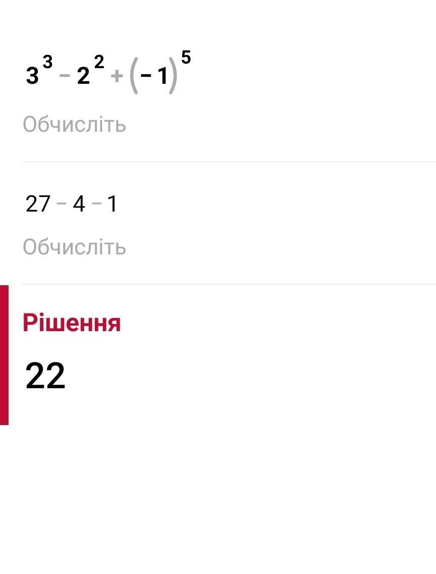2) 3 3 - 2 2 + (-1)5 = 27 - 4 - 1= 22