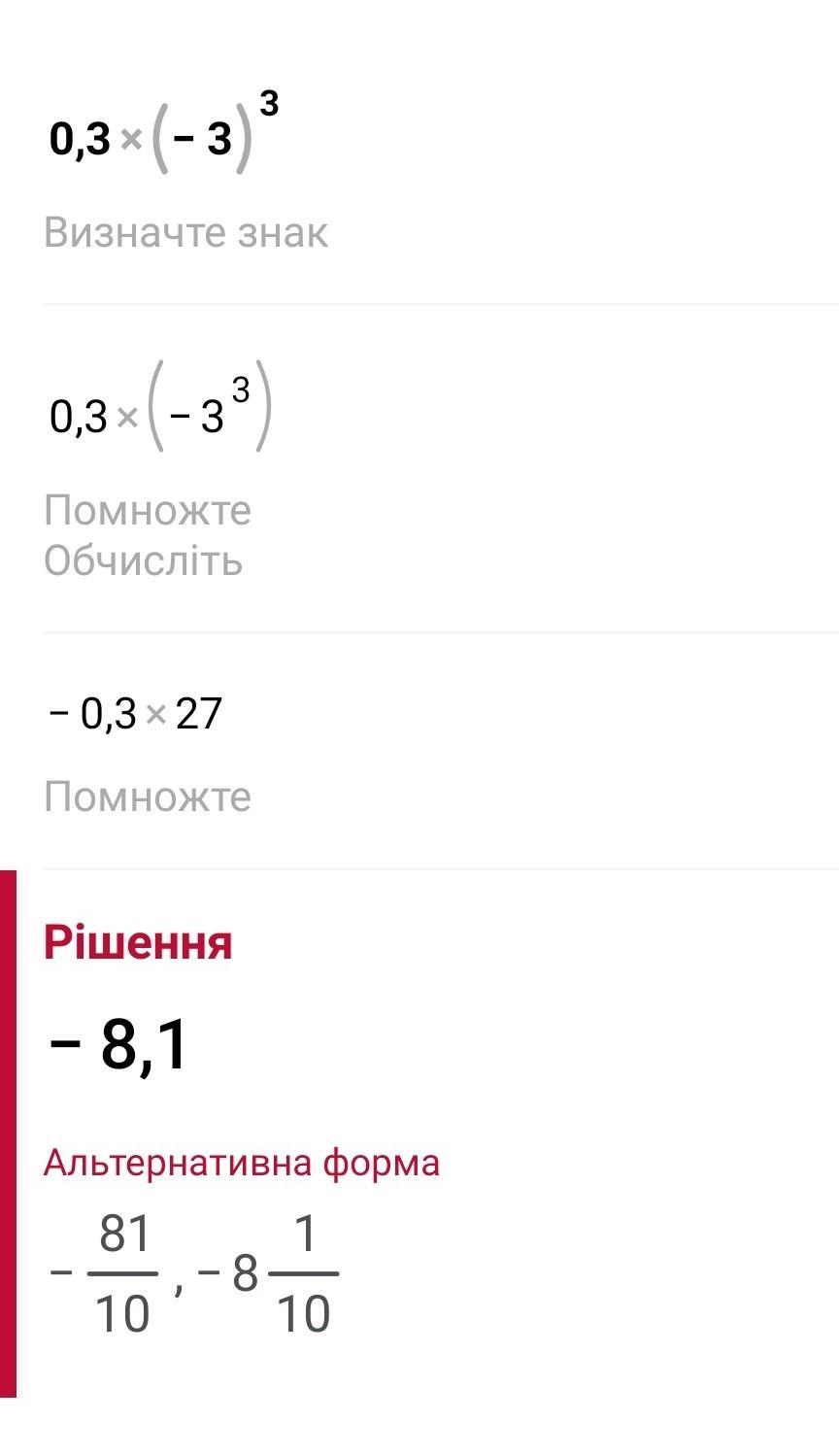 1) 0,3 * (-3)3= 0,3 * (-27)= -8,1