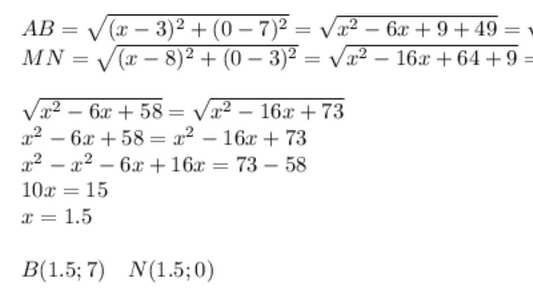 Даны точки A(3;0); B(x;4); M(7;3) и N(x;0).