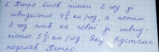 2) 3 * 5 2/3 = 3 * 17/3 = 1 * 17/1 = 17/1 = 17 (км) - проплыл Петя на лодке