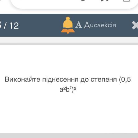 0,5 у другій степені це (0,5 помножити на 0,5) тобто 0,25; при зведені ступеня у якусь степень, ступені помножаються тобто a2 степені - буде 2 помножити на 2= 4, тобто а в 4 степені, також b у першій степені, 1 помножити на 2 = 2, тобто b у другій степені