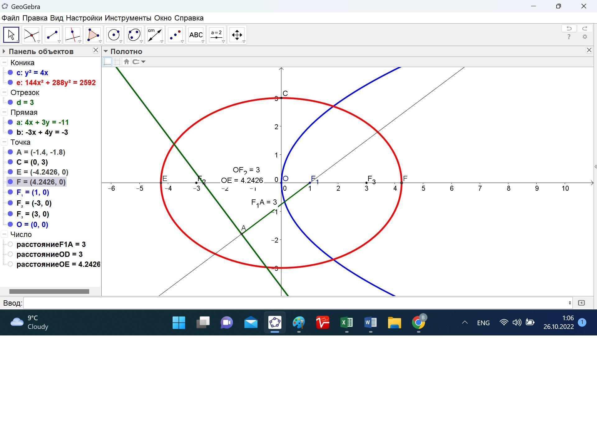 c^2 = a^2 – b^2. Значение b найдено и равно 3.